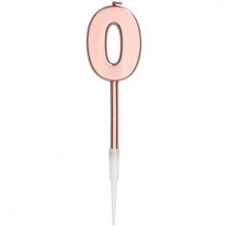 Vela nº0 de aniversário em rosa dourado metálico com cerca de 14cms num estilo contemporâneo.