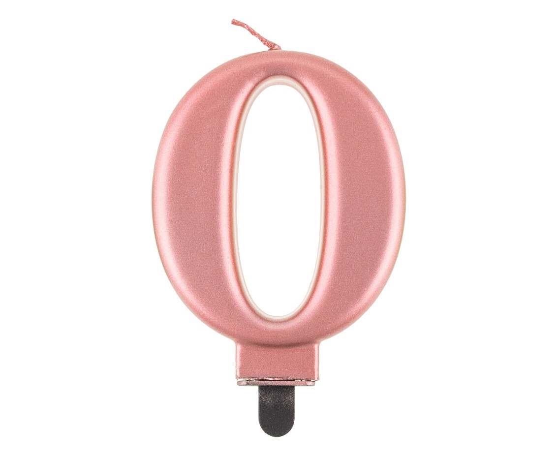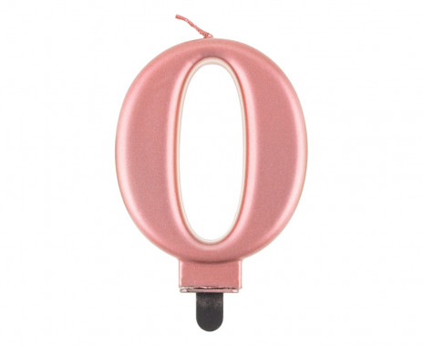 Vela nº0 de aniversário em tom de rosa dourado metalizado com cerca de 8cms.
