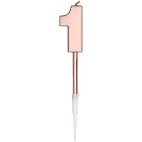 Vela nº1 de aniversário em rosa dourado metálico com cerca de 14cms num estilo contemporâneo.