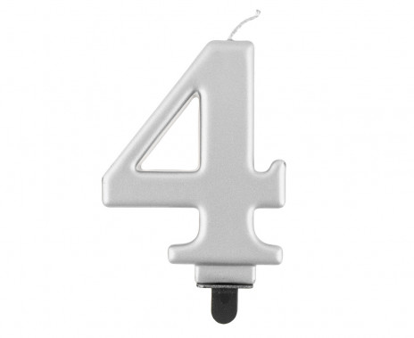 Vela nº4 de aniversário em tom de prateado metalizado com cerca de 8cms.