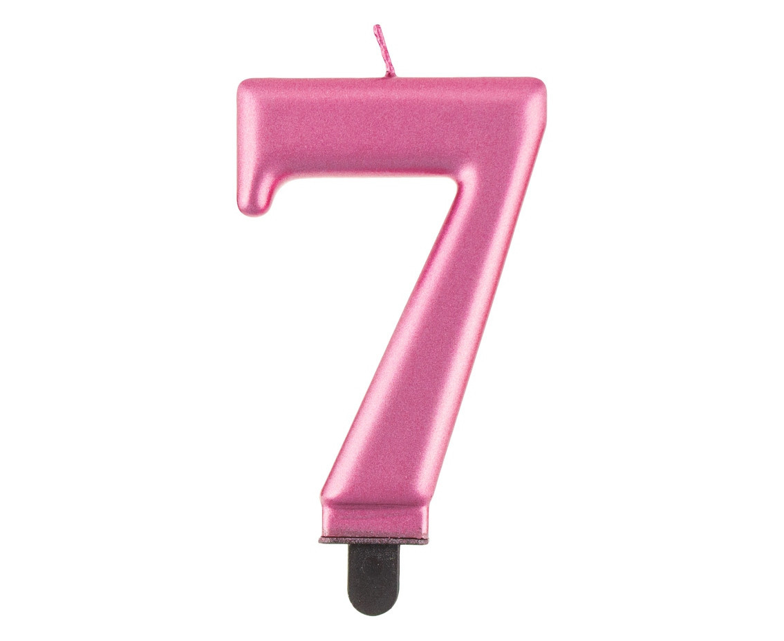 Vela nº7 de aniversário em tom de rosa metalizado com cerca de 8cms.