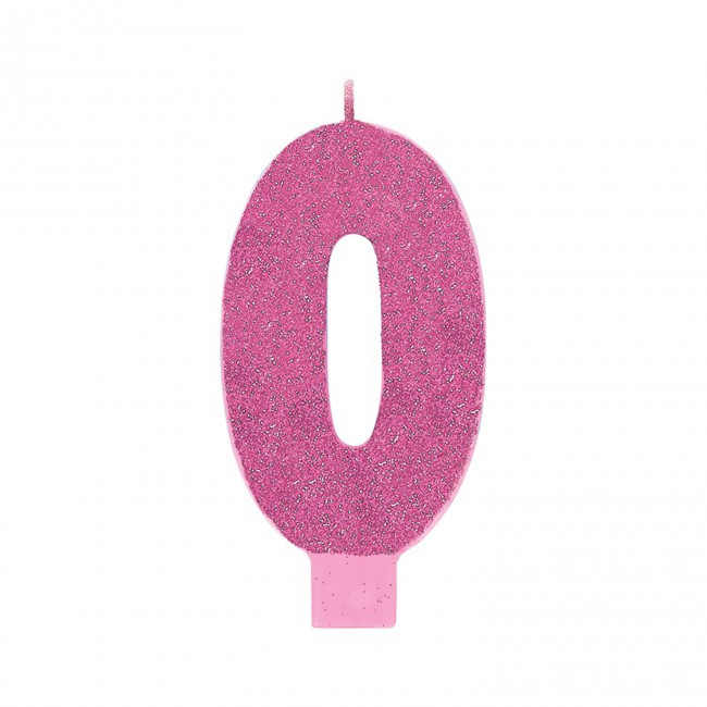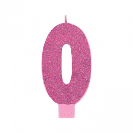 Vela de Aniversário de 13cm aproximadamente, nº 0 com glitter de cor rosa