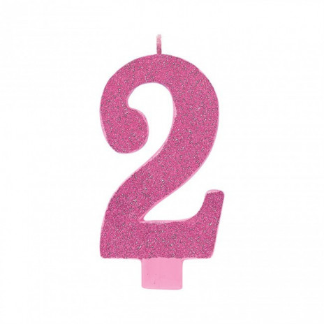 Vela de Aniversário de 13cm aproximadamente, nº 2 com glitter de cor rosa