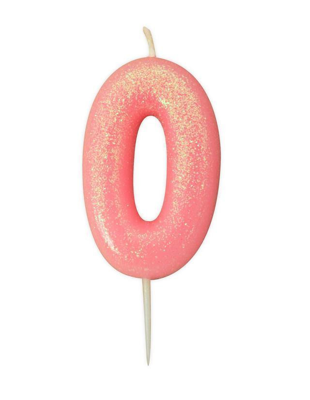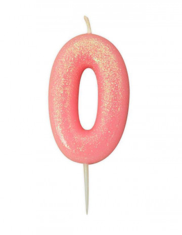 Vela de aniversário número zero com acabamento em glitter no tom rosa.