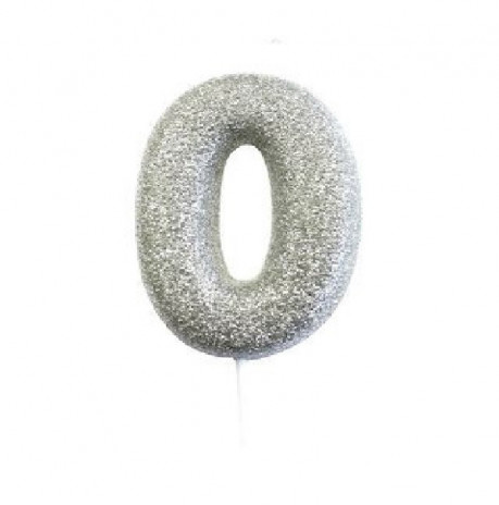 Vela de aniversário número zero com acabamento em glitter no tom prata.
