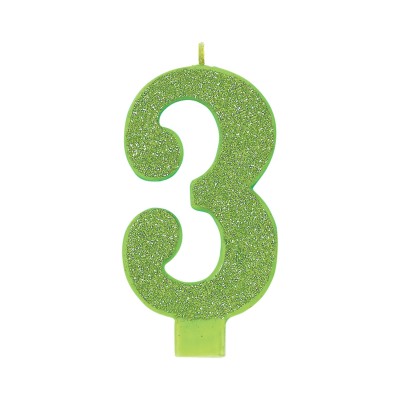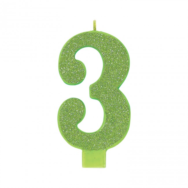 Vela de Aniversário de 13cm aproximadamente, nº 3 com glitter de cor Verde