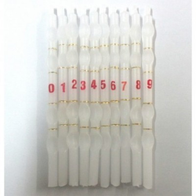 Vela branca comum de aniversário com número à escolha de 0 a 9. Vendido à unidade.
