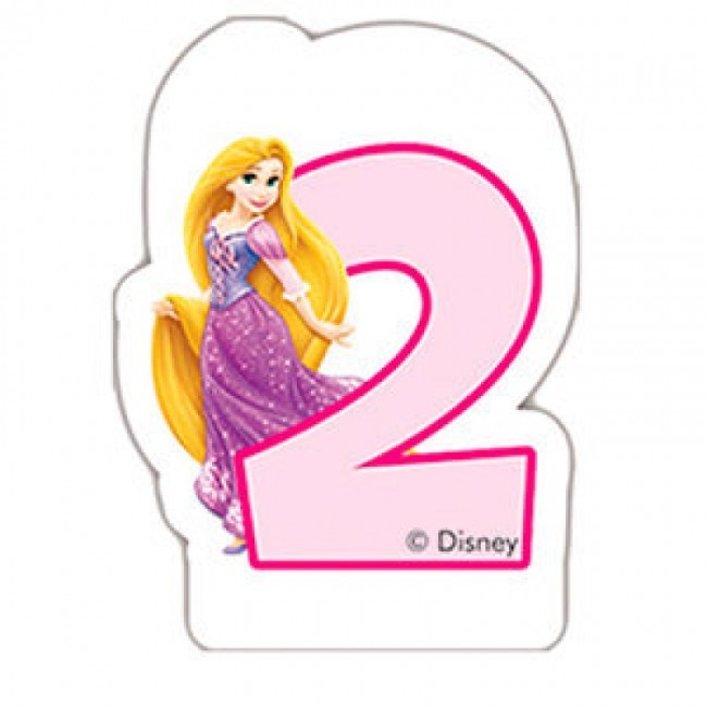 Vela com a inscrição 2 para o bolo de aniversário do tema Princesas Disney