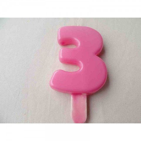 Uma vela de bolo de 9,5 cts de altura. Colecção composta pelos números de 1 a 0. Disponível em 14 cores para decoração de bolos de aniversário.