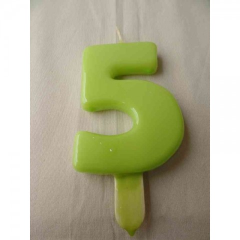 Uma vela de bolo de 9,5 cts de altura (sem pé). Colecção composta pelos números de 1 a 0. Disponível em 14 cores para decoração de bolos de aniversário.