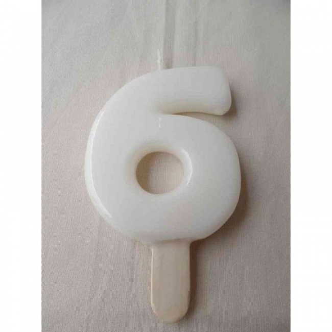 Vela branca para festa de aniversário de fabrico artesanal com altura de 9,5cm.