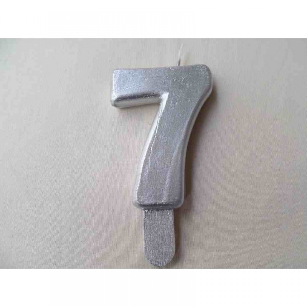 Vela aniversário prateada de fabrico artesanal com altura de 9,5cm. Colecção composta pelos números de 1 a 0.