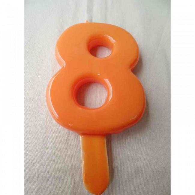 Uma vela de bolo de 9,5 cts de altura. Colecção composta pelos números de 1 a 0. Disponível em 14 cores para decoração de bolos de aniversário.