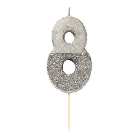 Vela N.º 8 Prata Glitter