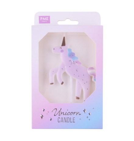 Vela para bolo de aniversário com a forma de unicórnio. Ideal para decorar o teu bolo de aniversário com o mesmo tema.