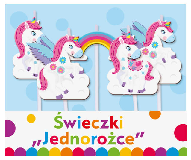 Embalagem com 5 velas para festas de aniversario sob o tema Unicornio