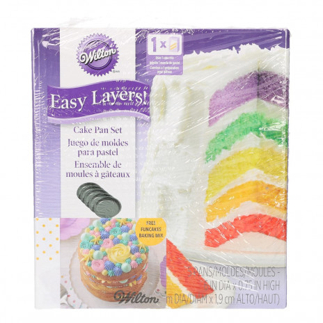 Um pack composto de 5 formas baixas para a confecção de um bolo de várias camadas. Podendo fazer um bolo com 5 cores diferentes, ou não!