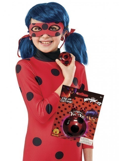 Kit Ladybug composto por yo-yo para brincar e 2 brincos de mola. Os complementos ideais para acompanhar a fantasia da Miraculous Ladybug. Também disponíveis os fatos em vários tamanhos e a peruca.