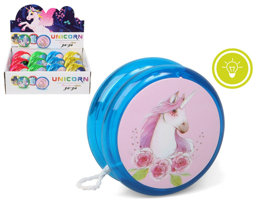 Divertido yoyo com luz da tua personagem preferida, o Unicórnio. Disponível em quatro modelos sortidos. Ideal para os brindes do teu aniversário.